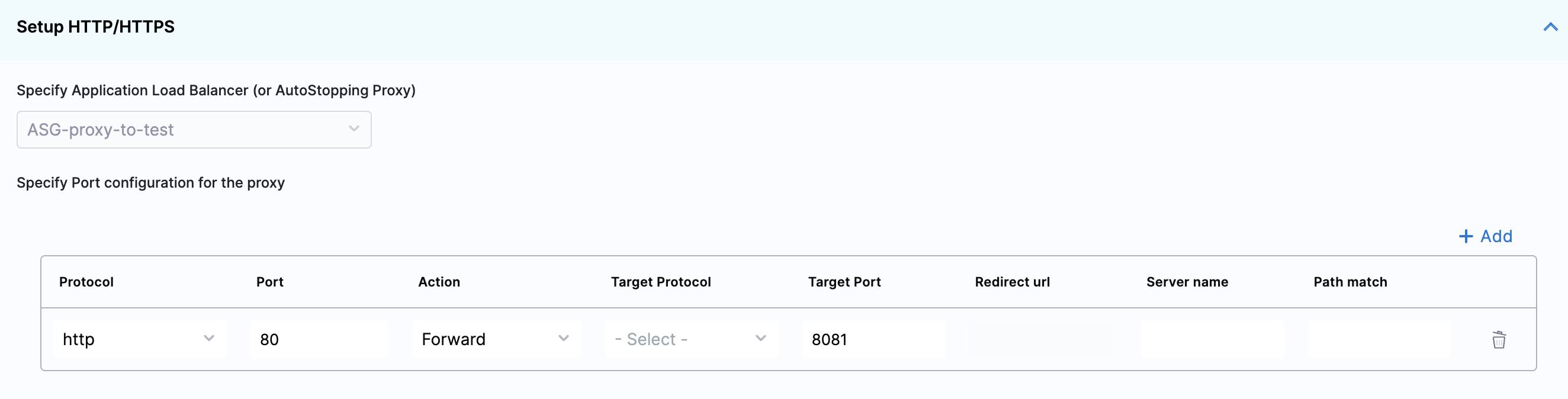 - Choose an AutoStopping Proxy load balancer from the Specify AutoStopping Proxy dropdown list to set up access.