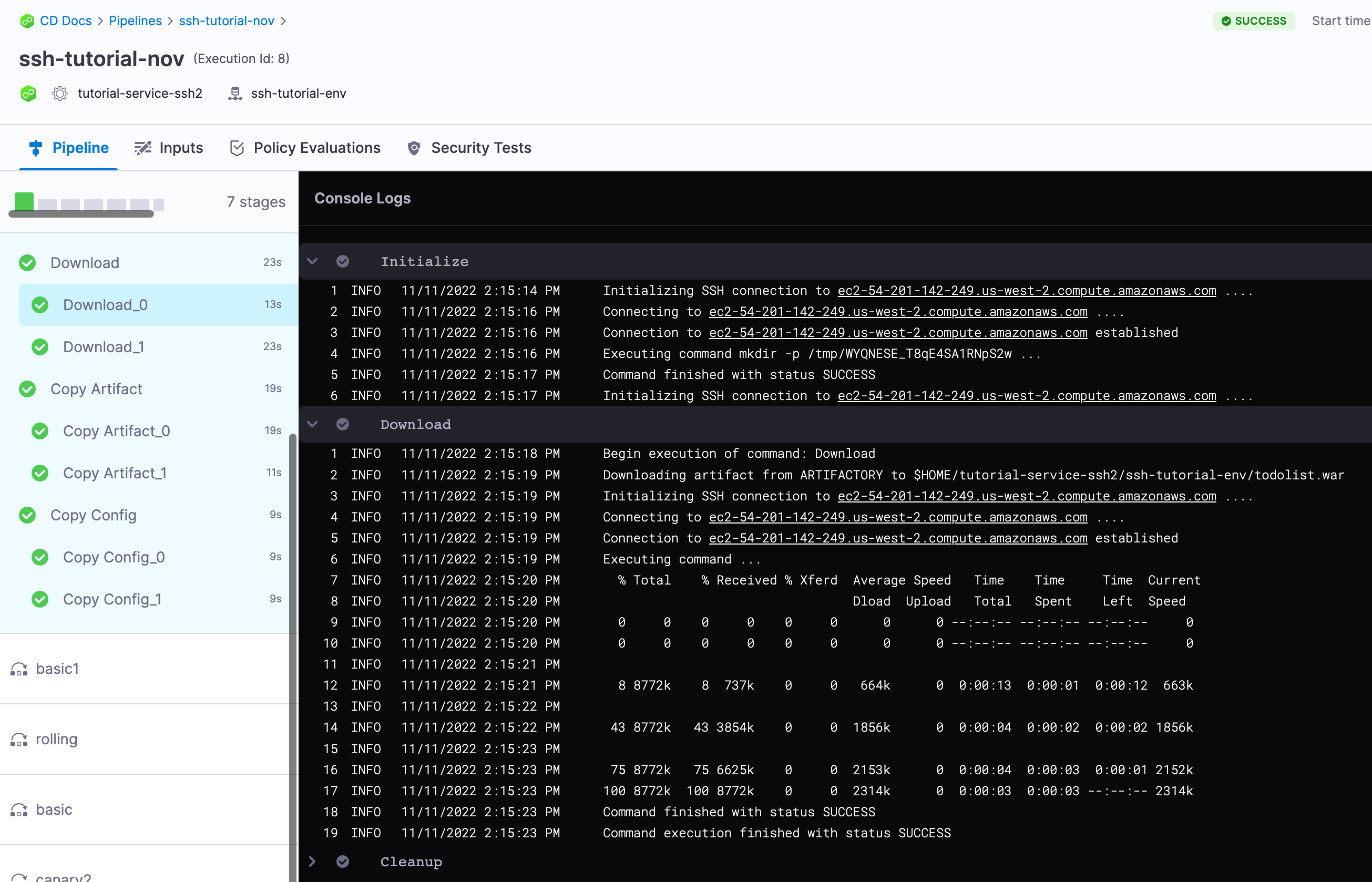 Using the Download command type, you can download the deployment artifact onto the target hosts of the deployment.